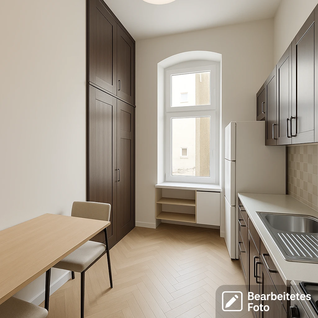 - Das erste Foto in unserer Galerie wurde leicht bearbeitet, um zu veranschaulichen, wie die Wohnung aussehen könnte – beispielsweise durch eine geänderte Wandfarbe. Die nachfolgenden Bilder zeigen den tatsächlichen Zustand der Immobilie.