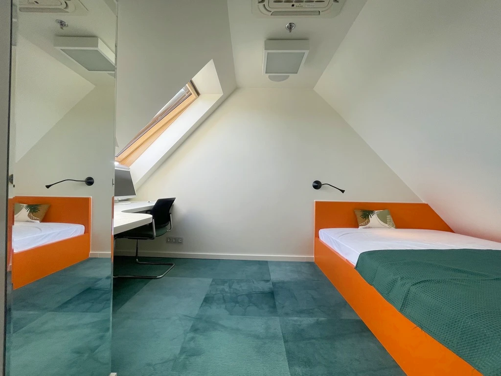 - Hochwertiges Interieur mit maßgefertigten Möbeleinbauten (Betten, Schreibtische, Schränke) aus edlen Materialien