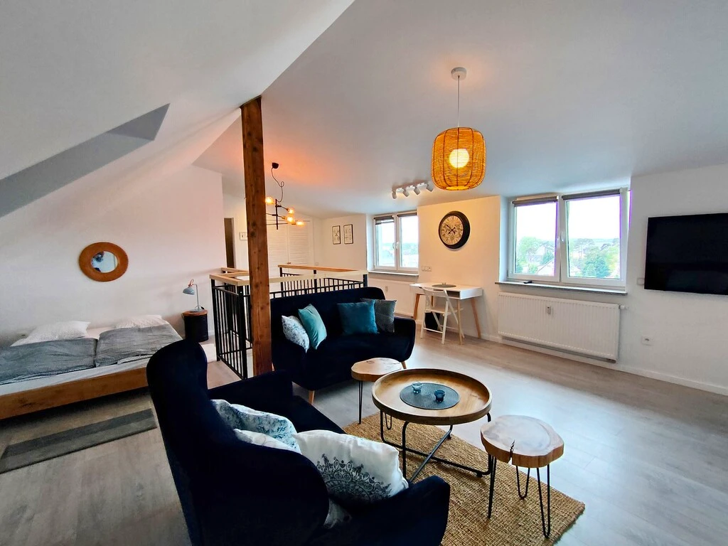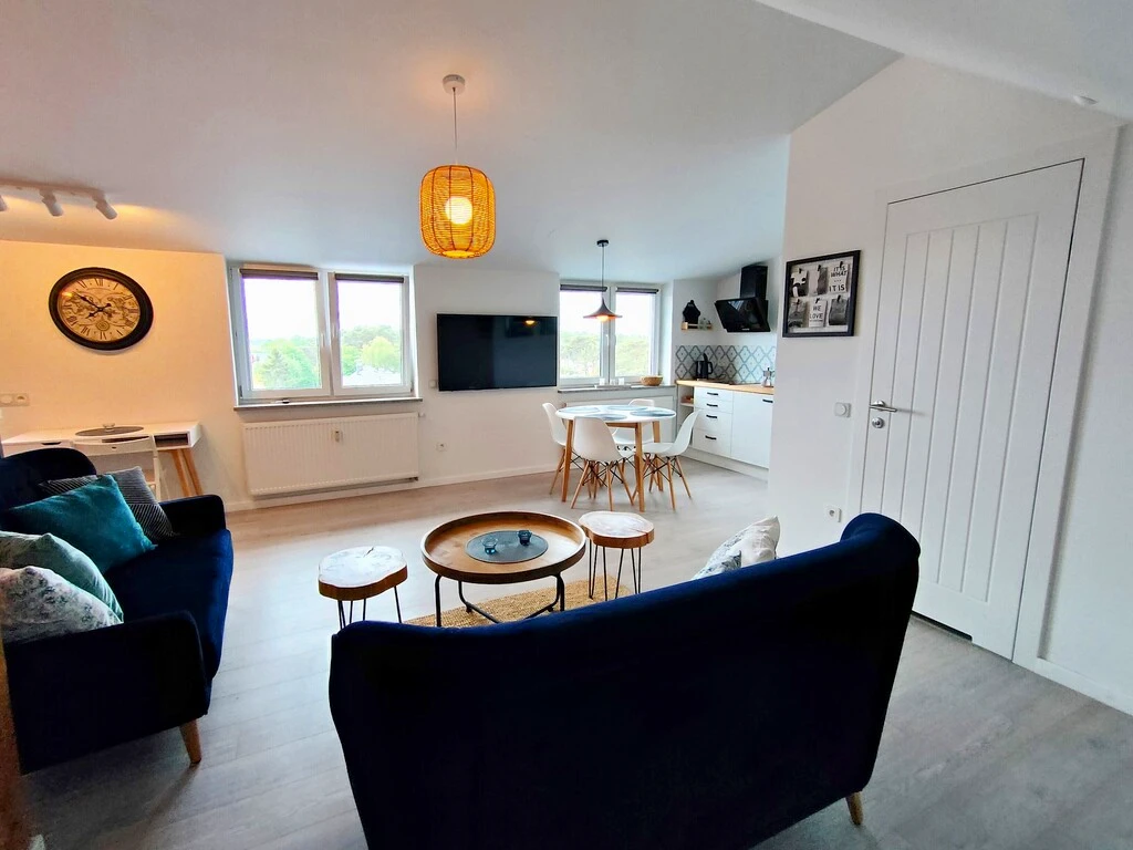 Die Wohnung besteht aus einem offen gestalteten Wohn- und Essbereich mit integrierter Küchenzeile, einem separaten Schlafzimmer sowie einem Badezimmer. Sämtliche Möbel, Haushaltsgeräte, Waschmaschine, Fernseher sowie Besteck, Handtücher und dekorative Elemente sind bereits im Preis enthalten – ein Rundum-sorglos-Paket!