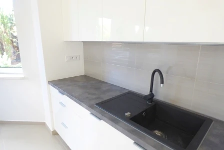 - Moderne, separate Küche mit Fenster und voll ausgestatteter Einbauküche (hochglänzende MDF-Fronten, alle Elektrogeräte inklusive)