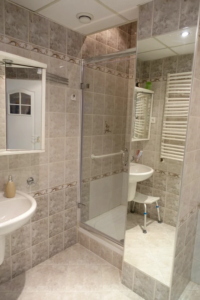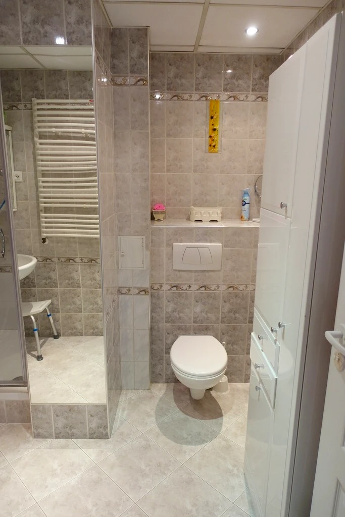- Badezimmer: 5 m² mit Dusche, Waschbecken, WC und Waschmaschine