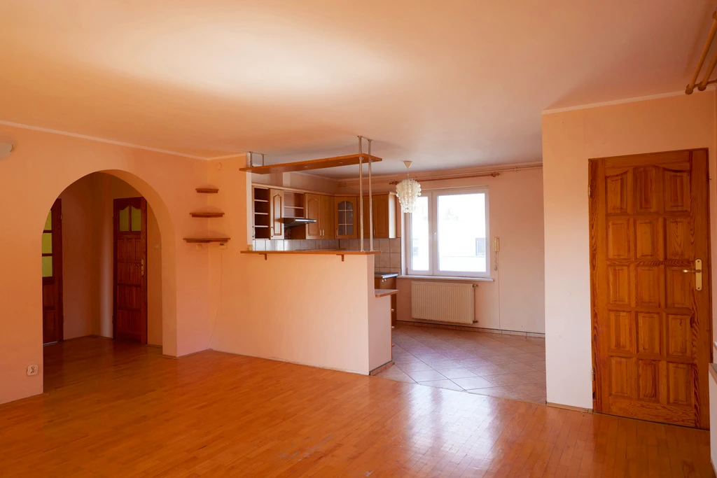 Zum Verkauf steht ein freistehendes Einfamilienhaus im beliebten Stadtteil Gumieńce. Die Immobilie befindet sich auf einem ebenen, rechteckigen Grundstück von 493 m² und bietet mit einer Gesamtfläche von 178,34 m² und einer Nutzfläche von 280,50 m² viel Platz für eine Familie. Das Haus wurde 1974 erbaut und befindet sich in einem guten baulichen Zustand, ist jedoch renovierungsbedürftig – ideal für Käufer mit kreativen Ideen!