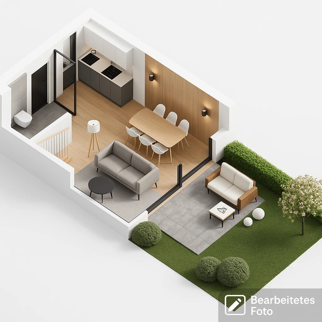 Jedes Haus bietet ca. 66,73 m² nutzbare Fläche (ca. 75 m² Gesamtfläche) – klug geschnitten mit offenem Wohn-Essbereich und Küchenzeile, ideal für individuelle Gestaltung. Die großzügige Grundstücksfläche von 304 m² schafft zusätzlichen Raum für Erholung im Grünen.