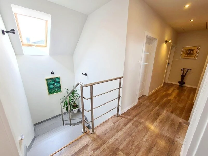 Obergeschoss: - Vier Schlafzimmer – jeweils ca. 10 m² bis 9 m² - Ankleide – 2,34 m² - Geräumiges Badezimmer mit Badewanne, Waschbecken, Bidet und WC – 5,88 m² - Waschraum – 4,59 m² - Flur – 8,52 m² - Treppenbereich – 4,95 m²