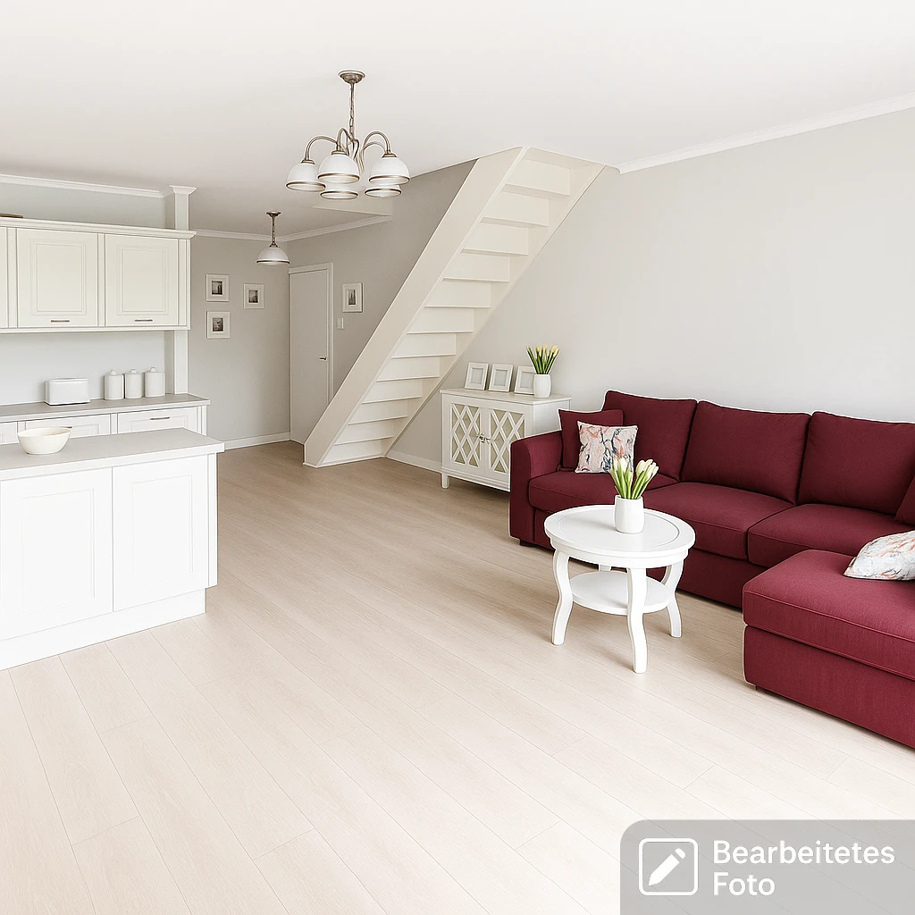 - Das erste Foto in unserer Galerie wurde leicht bearbeitet, um zu veranschaulichen, wie die Wohnung aussehen könnte – beispielsweise durch eine geänderte Wandfarbe. Die nachfolgenden Bilder zeigen den tatsächlichen Zustand der Immobilie.