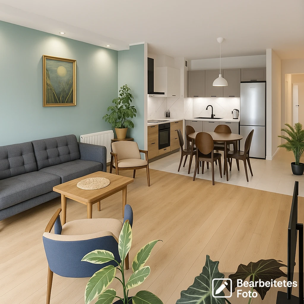 - Das erste Foto in unserer Galerie wurde leicht bearbeitet, um zu veranschaulichen, wie die Wohnung aussehen könnte – beispielsweise durch eine geänderte Wandfarbe. Die nachfolgenden Bilder zeigen den tatsächlichen Zustand der Immobilie.