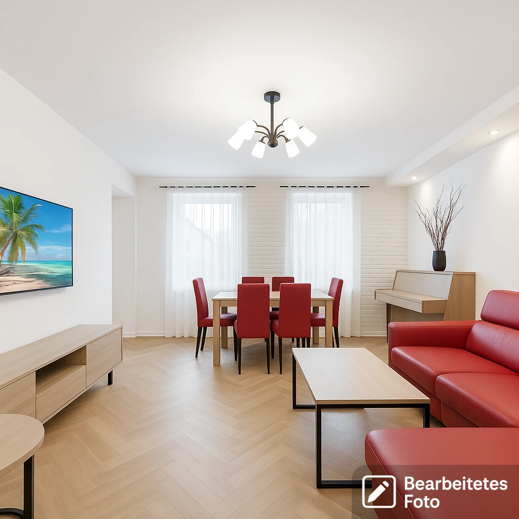 - Das erste Foto in unserer Galerie wurde leicht bearbeitet, um zu veranschaulichen, wie die Wohnung aussehen könnte – beispielsweise durch eine geänderte Wandfarbe. Die nachfolgenden Bilder zeigen den tatsächlichen Zustand der Immobilie.