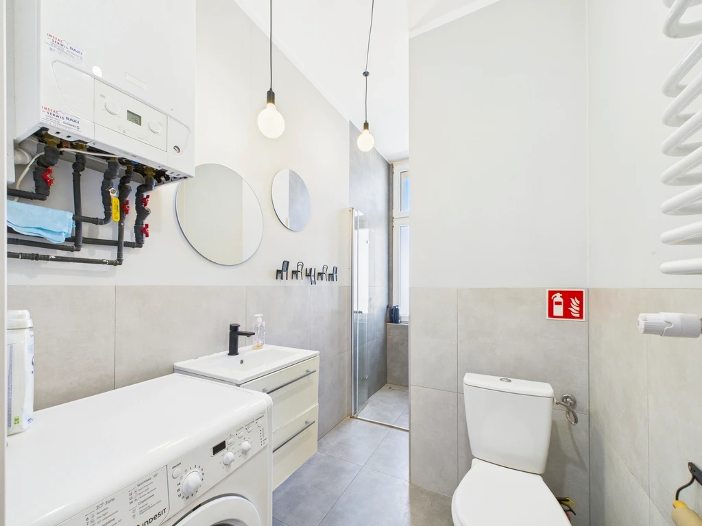 Die Immobilie bietet: - Fünf Schlafzimmer – ideal als Einzelzimmer nutzbar (vier Einzel- und ein Doppelzimmer) - Separate Küche mit Fenster - Badezimmer mit Dusche und Toilette - Zusätzliches, separates WC für mehr Komfort - Geräumiger Flur - Eigenes Kellerabteil im Untergeschoss - Kunststofffenster und strapazierfähige Bodenpaneele - Multimediaanschluss sowie Gegensprechanlage