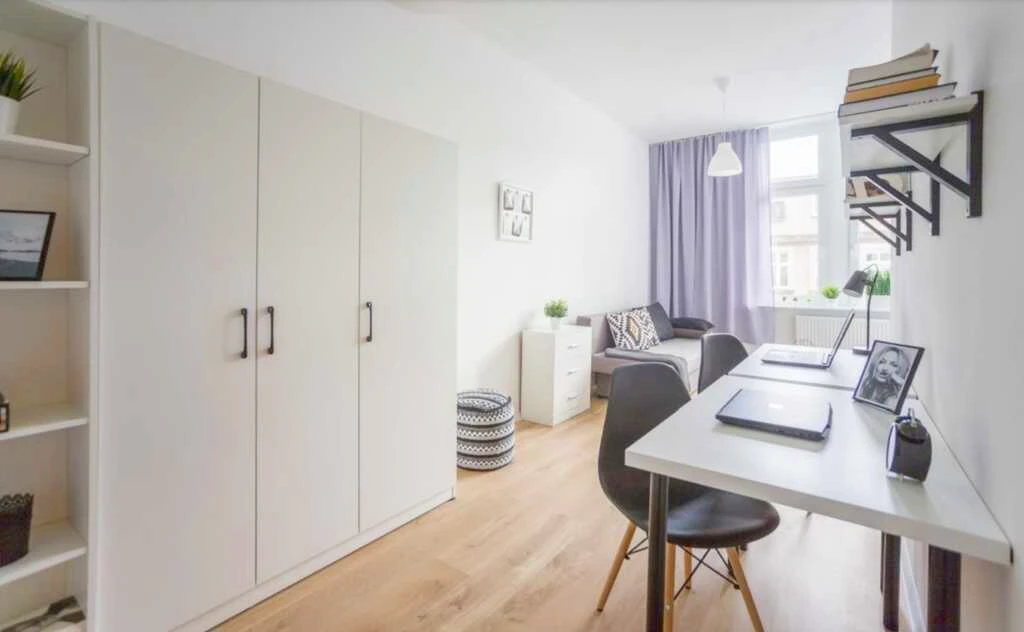 Willkommen in dieser einladenden, lichtdurchfluteten Wohnung im Zentrum von Stettin, nur wenige Schritte vom beliebten Kasprowicz-Park und zahlreichen Erholungsmöglichkeiten entfernt. Die Lage ist hervorragend – sowohl für Studierende, Familien als auch für Berufstätige, die städtische Nähe und grüne Umgebung schätzen.