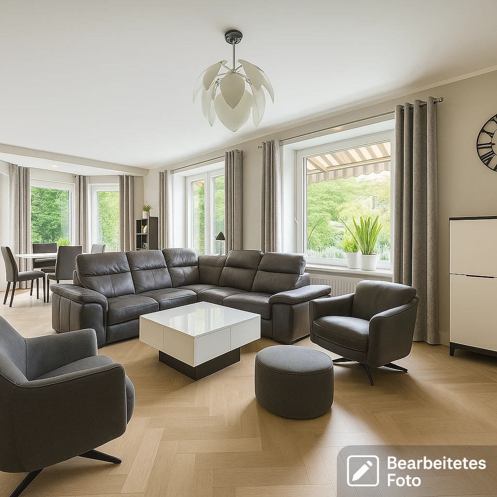- Das erste Foto in unserer Galerie wurde leicht bearbeitet, um zu veranschaulichen, wie die Wohnung aussehen könnte – beispielsweise durch eine geänderte Wandfarbe. Die nachfolgenden Bilder zeigen den tatsächlichen Zustand der Immobilie.