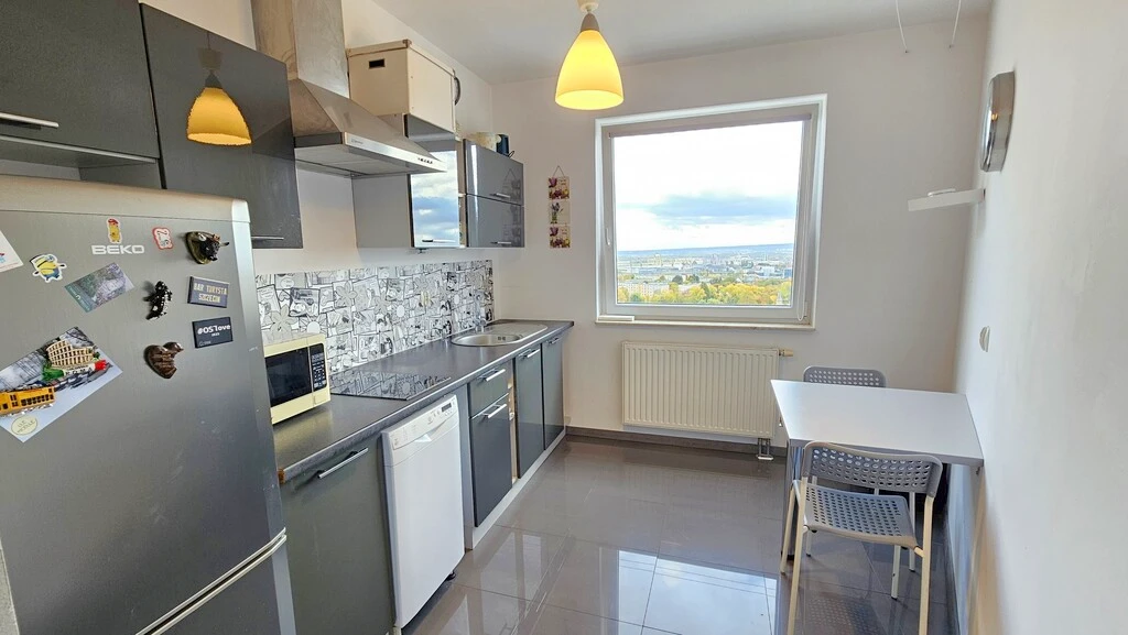 Willkommen zuhause – in einer Wohnung, die nicht nur durch ihre Lage, sondern auch durch ihren Komfort und Ausblick begeistert. Gelegen im 13. Stock des markanten Hochhauses „Widok“ im Stadtteil Niebuszewo, bietet dieses helle 3-Zimmer-Apartment eine fantastische Sicht auf die Skyline von Szczecin.