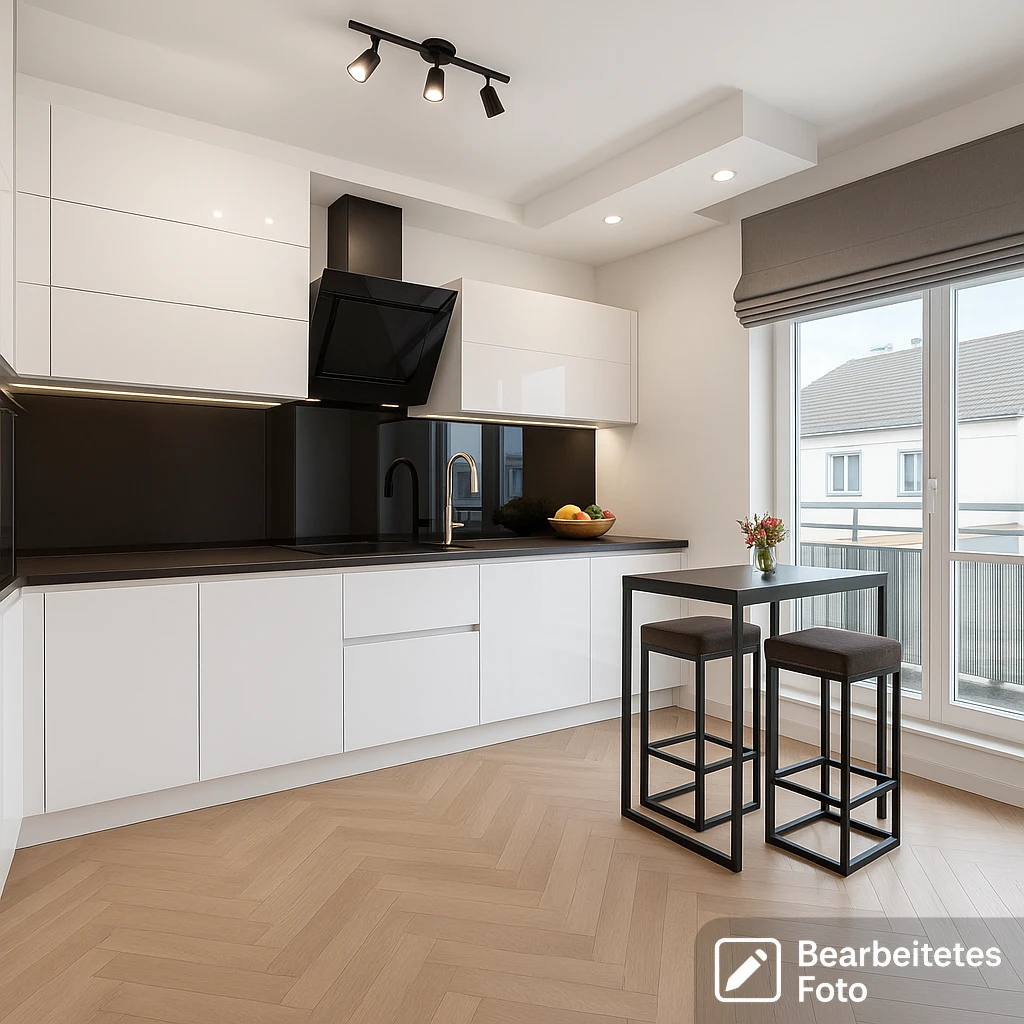 Die Wohnung ist hochwertig ausgestattet und wurde sehr gepflegt. Die offene Küche ist funktional gestaltet und geht nahtlos in den Wohnbereich über, was ein angenehmes Raumgefühl vermittelt. Große Fenster sorgen für viel Tageslicht im gesamten Wohnbereich.