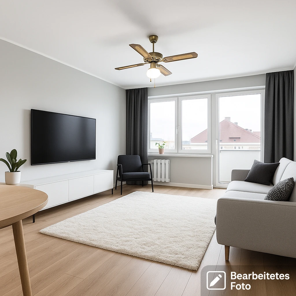 - Das erste Foto in unserer Galerie wurde leicht bearbeitet, um zu veranschaulichen, wie die Wohnung aussehen könnte – beispielsweise durch eine geänderte Wandfarbe. Die nachfolgenden Bilder zeigen den tatsächlichen Zustand der Immobilie.