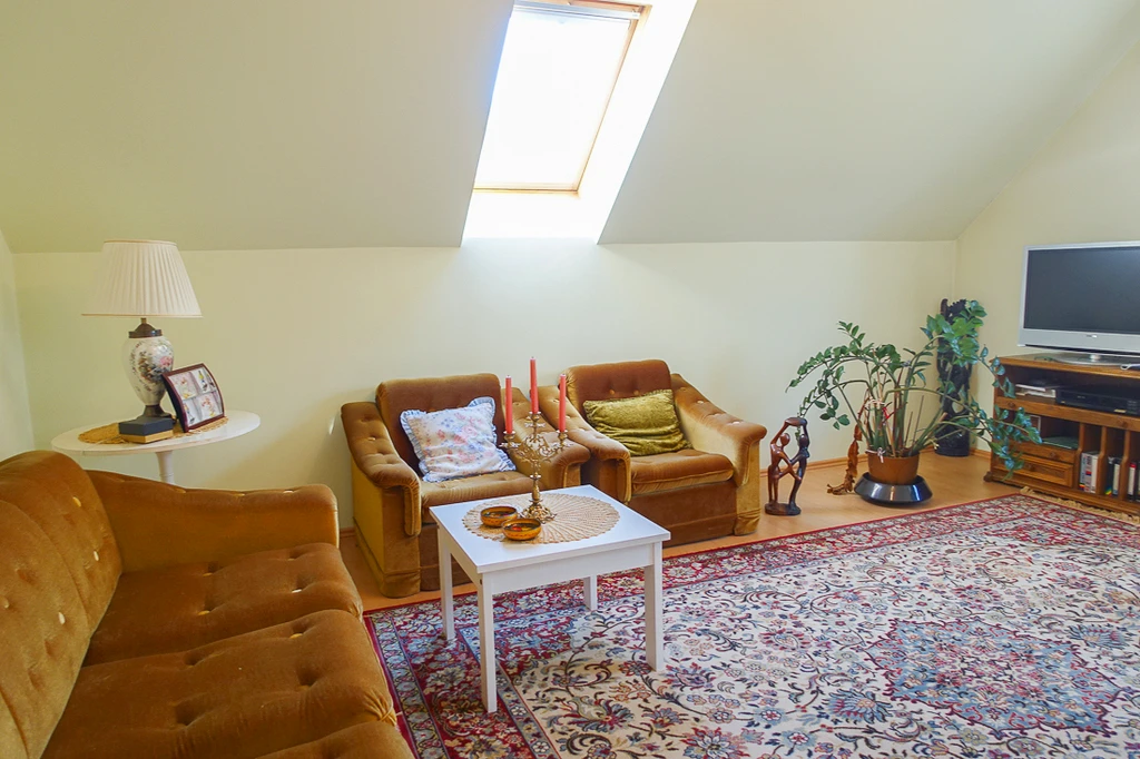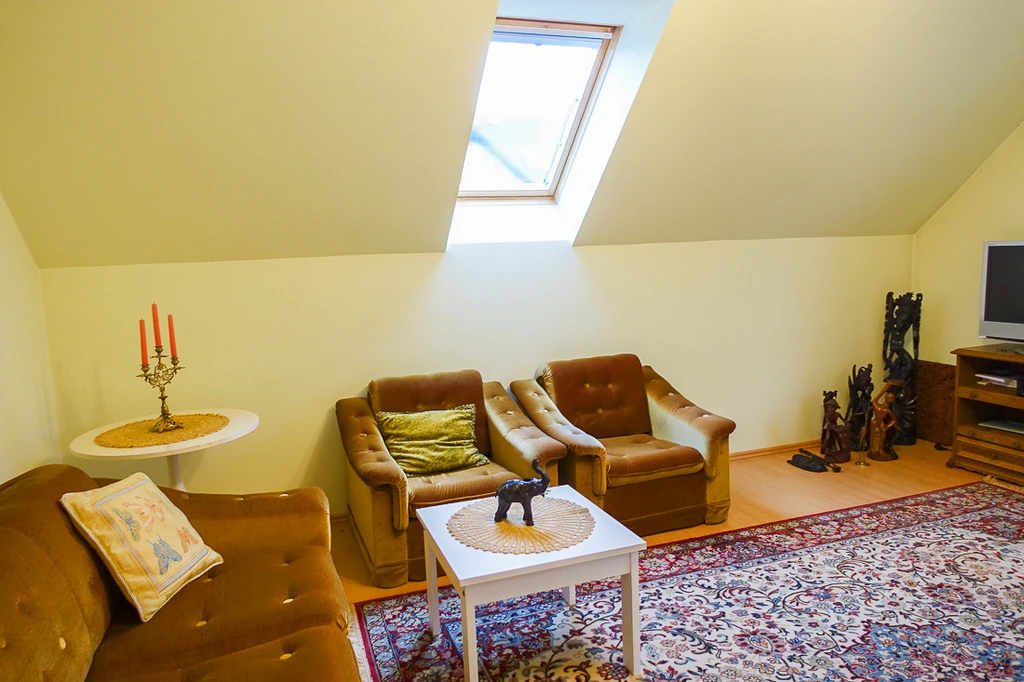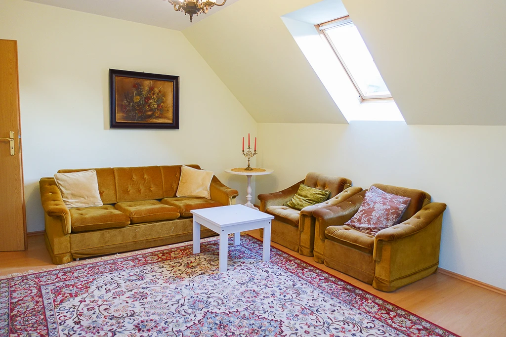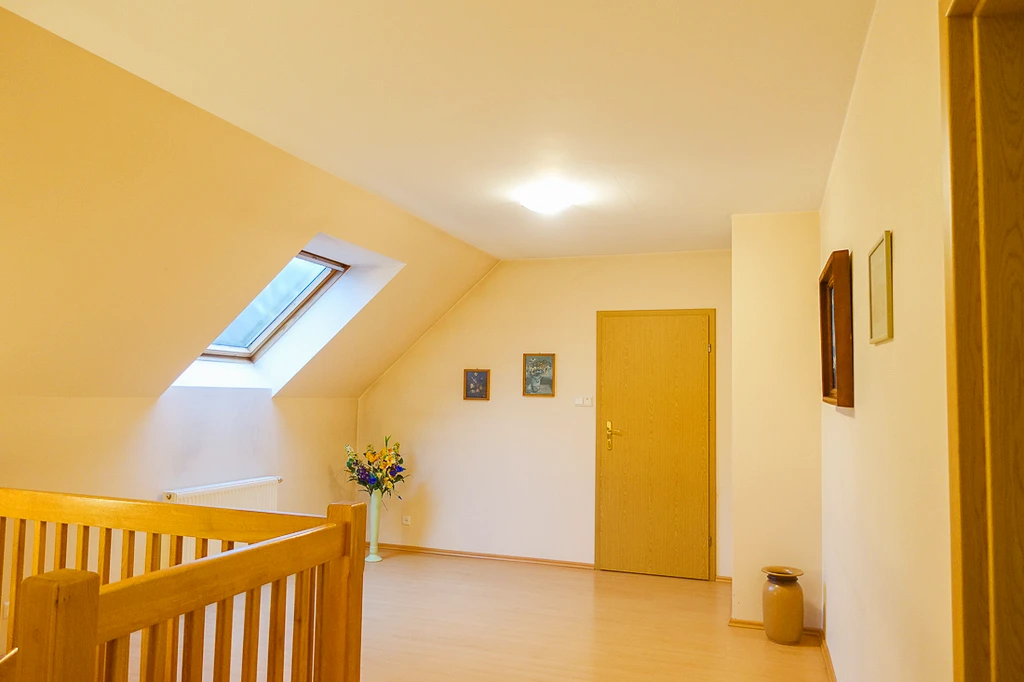 - Offener Loungebereich im Flur (18,5 m² / Bodenfläche: 20 m²): Mit Dachflächenfenster.