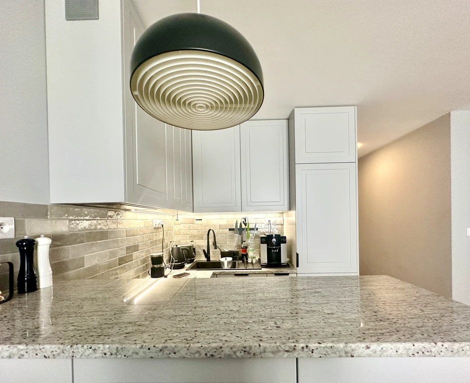 - Küche: Offene Küche mit moderner Ausstattung – Kühlschrank, Backofen und Geschirrspüler sind vorhanden