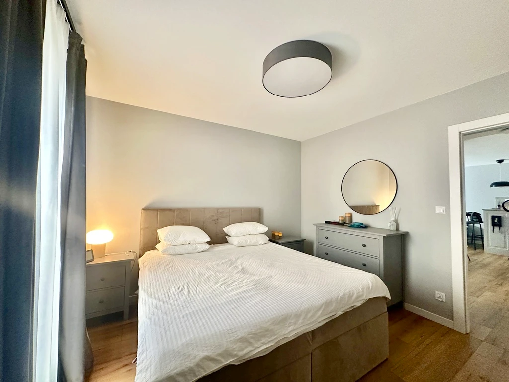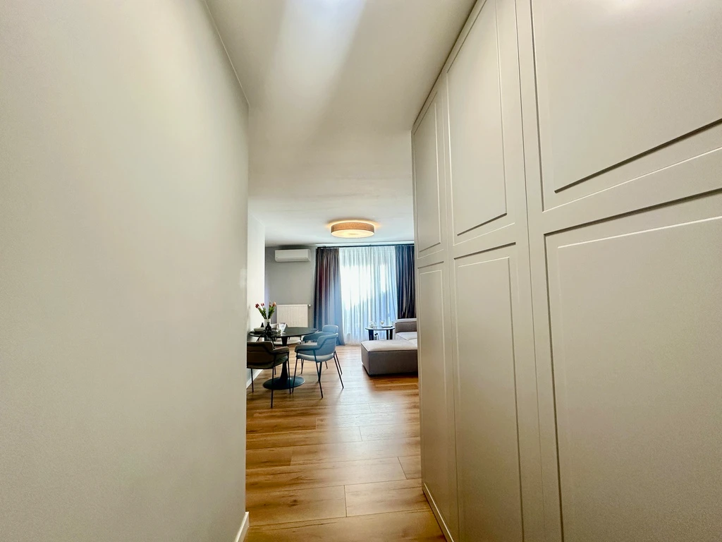 Diese stilvolle 3-Zimmer-Wohnung befindet sich im Zentrum von Śródmieście in einem modernen, 2021 erbauten Apartmentgebäude aus Ziegelbauweise. Sie bietet eine Gesamtfläche von 77 m² und ist ideal für all jene, die hochwertigen Wohnkomfort in bester Lage suchen.