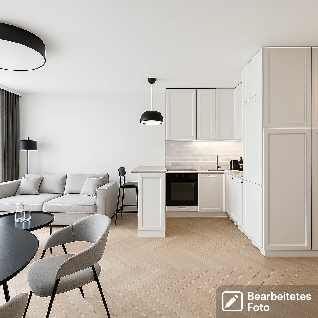 - Das erste Foto in unserer Galerie wurde leicht bearbeitet, um zu veranschaulichen, wie die Wohnung aussehen könnte – beispielsweise durch eine geänderte Wandfarbe. Die nachfolgenden Bilder zeigen den tatsächlichen Zustand der Immobilie.