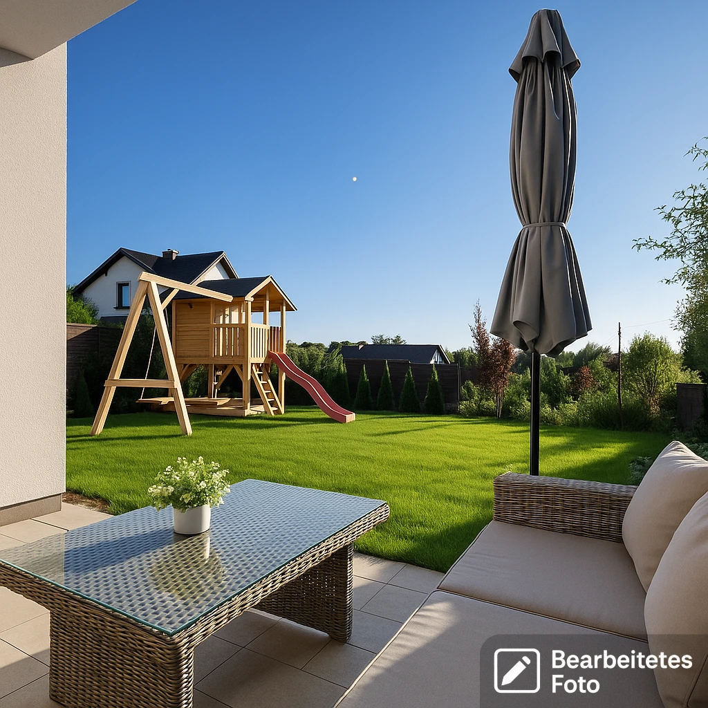 - Einladender Garten, ideal zum Entspannen oder zum sommerlichen Grillen – erhöhte Lage mit freiem Blick, kaum Kontakt zu Nachbarn