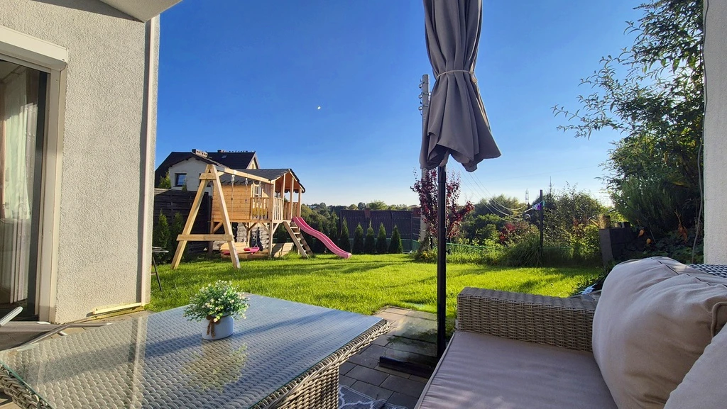 Willkommen in Ihrem neuen Zuhause – eine außergewöhnlich gepflegte Doppelhaushälfte in begehrter Lage in Górki Ustowskie, Stadtteil Pomorzany. Diese ruhige und familienfreundliche Wohngegend liegt am Straßenende, sodass Sie hier kaum Verkehr erwarten dürfen. Genießen Sie absolute Privatsphäre und einen wunderschönen Blick ins Grüne!