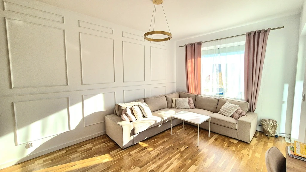 Dieses moderne, dreistöckige Reihenhaus (Baujahr 2021) bietet eine Wohnfläche von 145,49 m² auf einem rechteckigen Grundstück von 300,00 m². Es befindet sich im beliebten Stadtteil Pomorzany und überzeugt durch seinen idealen Zustand – innen wie außen.