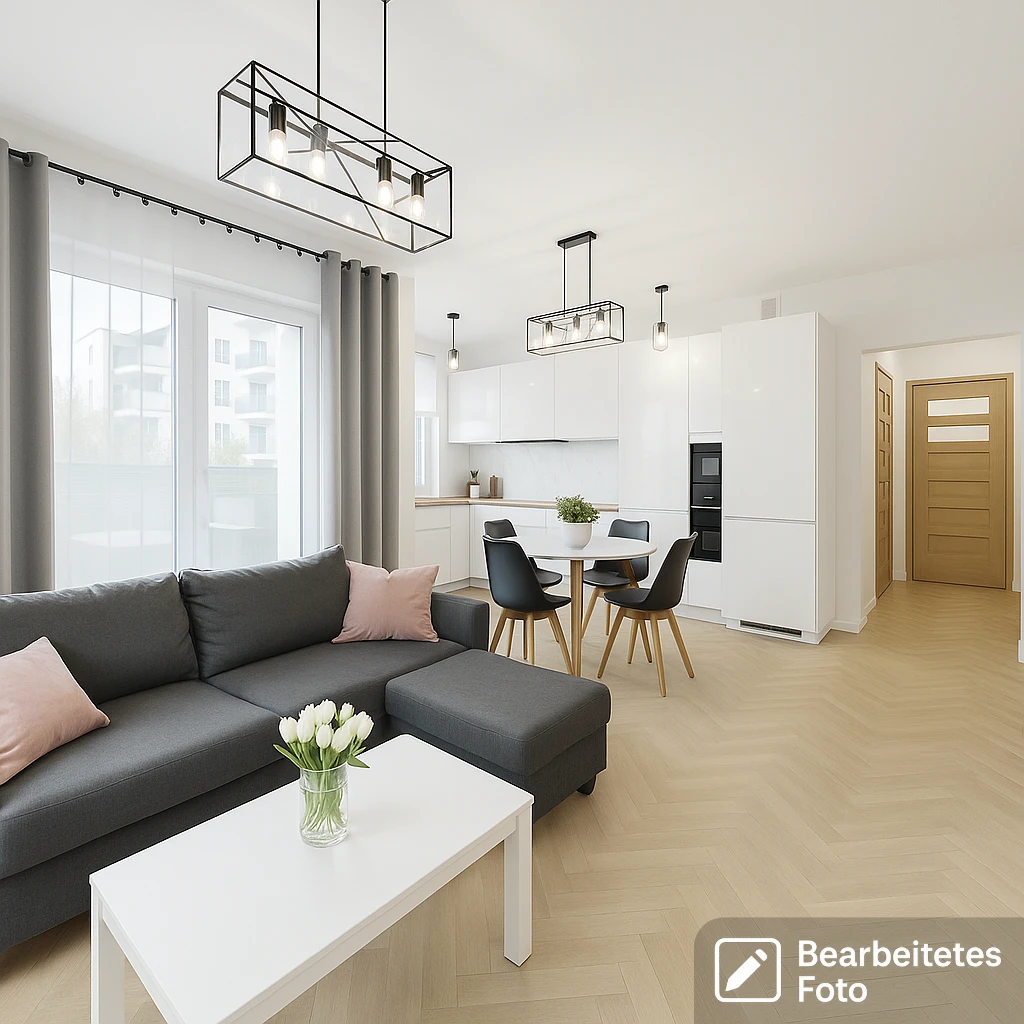 - Das erste Foto in unserer Galerie wurde leicht bearbeitet, um zu veranschaulichen, wie die Wohnung aussehen könnte – beispielsweise durch eine geänderte Wandfarbe. Die nachfolgenden Bilder zeigen den tatsächlichen Zustand der Immobilie.