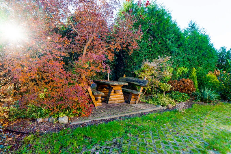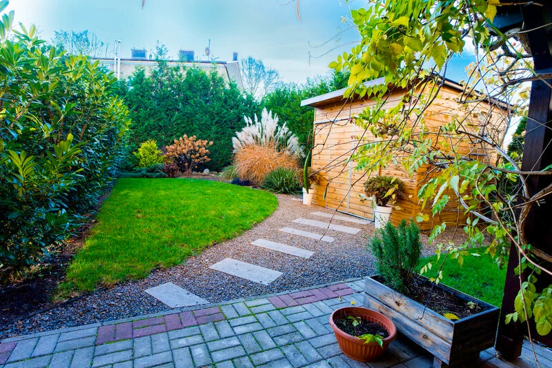 - Gepflegter Garten mit Geräteschuppen, Holzlager und gemütlichem Erholungsbereich