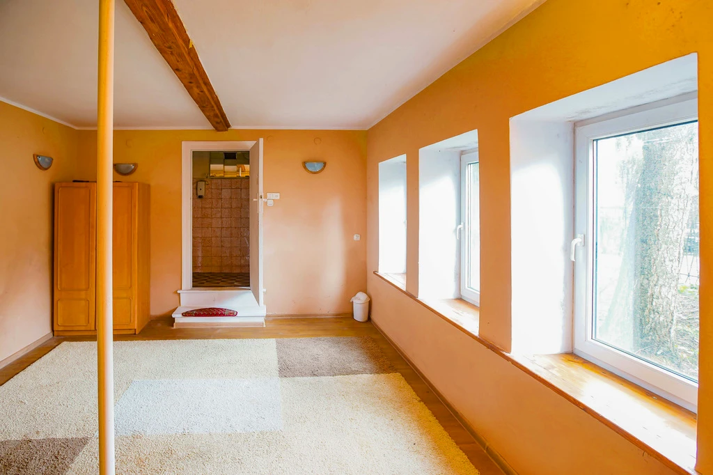 - Erdgeschoss: Zwei großzügige Zimmer (eins mit Erker), separate Küche, Badezimmer, Garderobe, Eingangsbereich sowie eine geschlossene Veranda