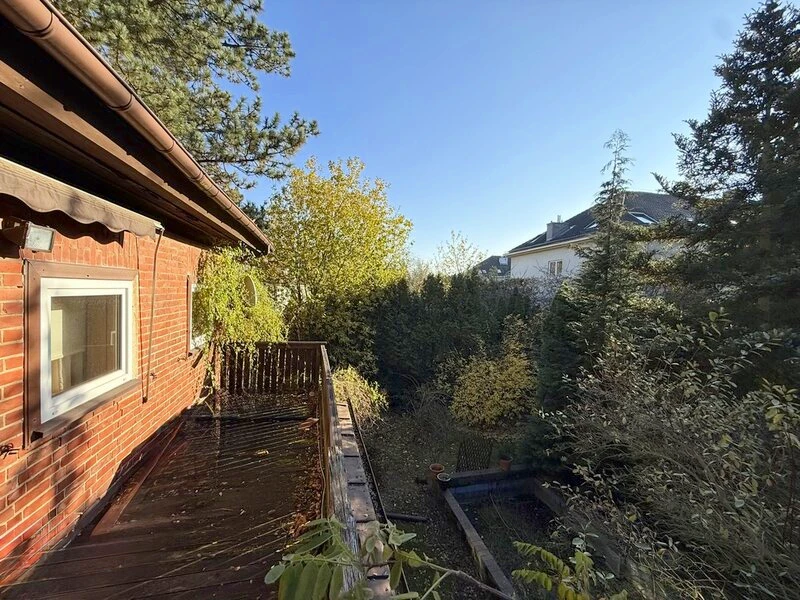 Das ca. 946 m² große Grundstück überzeugt mit altem Baumbestand, einer gemauerten Gartenlaube und sogar einem gemauerten Pool – eine wahre Oase der Ruhe. Die idyllische Lage an einer ruhigen, nicht durchfahrbaren Straße bietet maximale Privatsphäre und Erholung im Grünen.