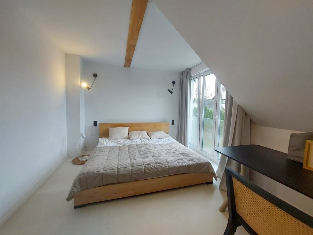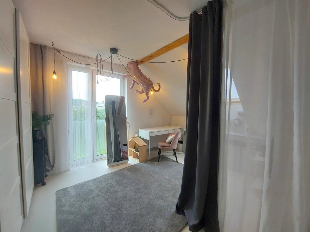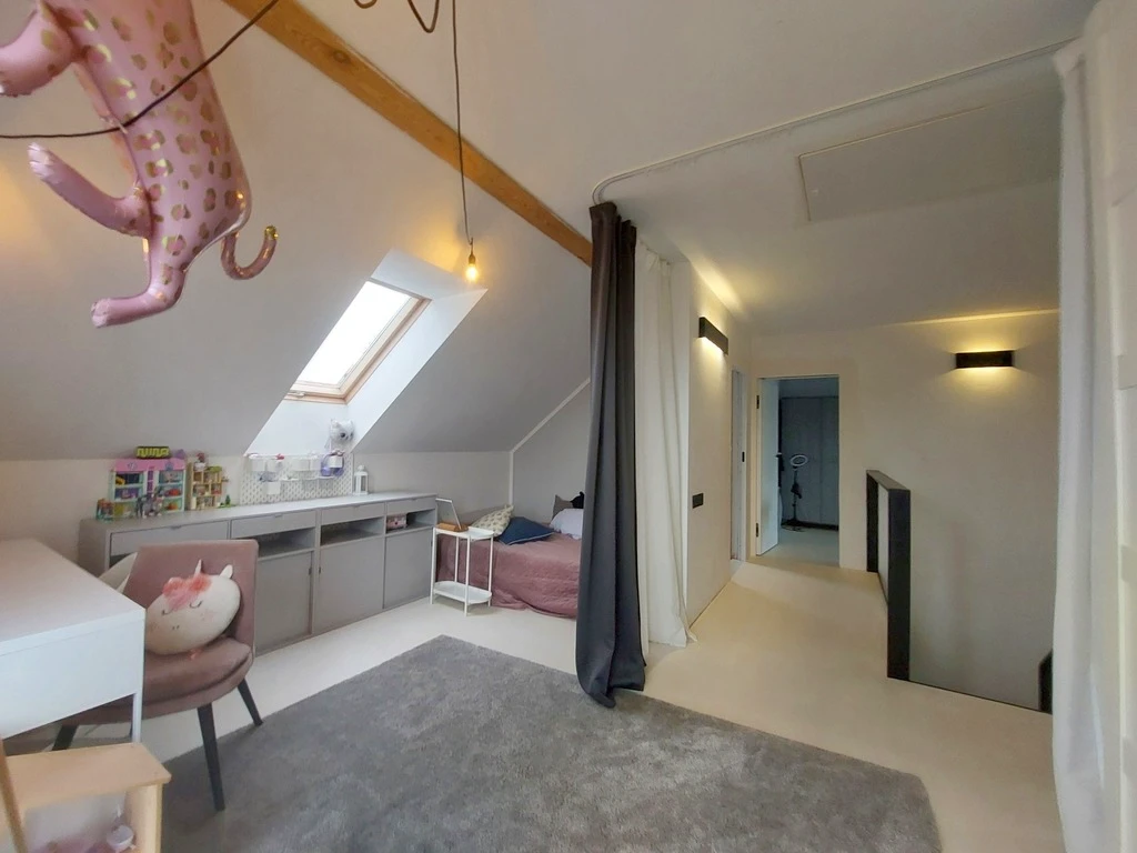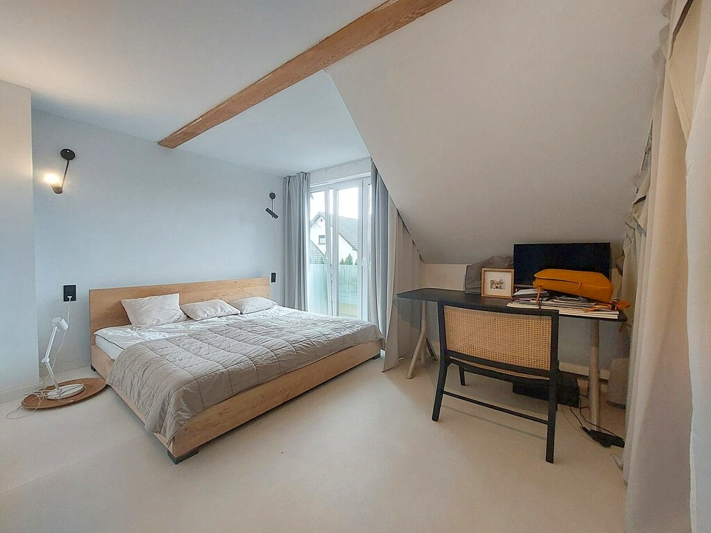 Im Inneren erwartet Sie ein lichtdurchflutetes, durchdachtes Raumkonzept: - Großzügiger Wohnbereich mit Essplatz und offener Küche – perfekt für gemeinsames Kochen und gemütliche Abende. Von hier aus gelangt man direkt auf die Terrasse und weiter in den Garten. - Gäste-WC mit deckenhoher Tür – außergewöhnlich und stilvoll gestaltet. - Praktischer Eingangsbereich (Windfang). - Integrierte Garage (ca. 15 m²) mit direktem Zugang zum Haus. - Zwei sehr geräumige Schlafzimmer (ca. 23 m² und 19 m²), eines davon mit Platz für eine große Ankleide. - Drittes Schlafzimmer (ca. 14 m²), derzeit offen gestaltet, lässt sich mit geringem Aufwand wieder durch eine Trennwand separieren. - Hochwertig ausgestattetes Badezimmer mit stilvoller Einrichtung.