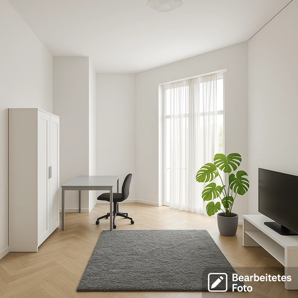 - Das erste Foto in unserer Galerie wurde leicht bearbeitet, um zu veranschaulichen, wie die Wohnung aussehen könnte – beispielsweise durch eine geänderte Wandfarbe. Die nachfolgenden Bilder zeigen den tatsächlichen Zustand der Immobilie.
