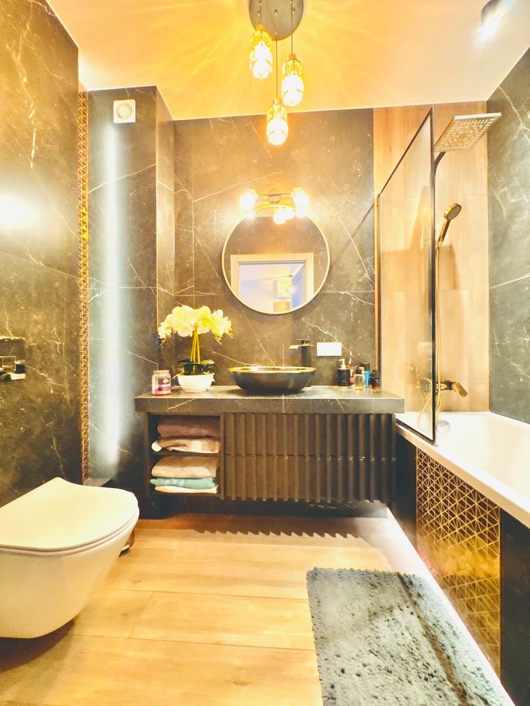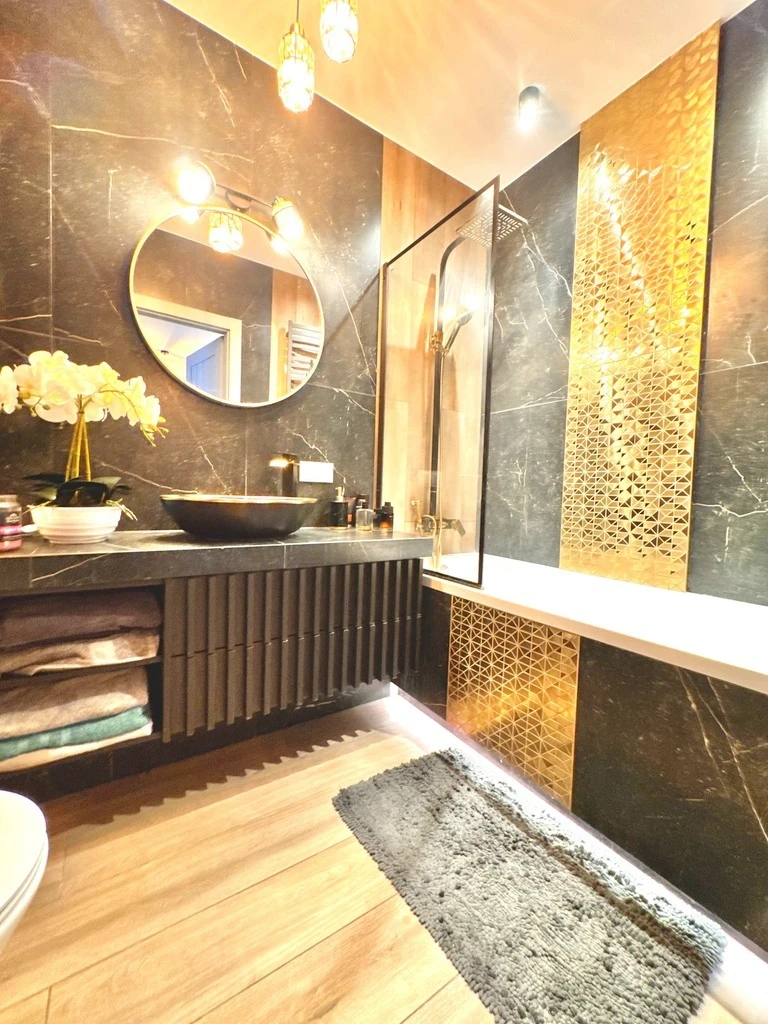 - Hochwertige Bodenbeläge in Form von modernen Paneelen.