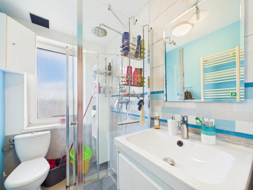 Die Wohnung wird aktuell über drei traditionelle Kachelöfen (Festbrennstoff – Kohle) beheizt, alternativ stehen elektrische Heizkörper zur Verfügung. Die jährlichen Heizkosten betragen ca. €378 (PLN 1.600). Warmwasser wird durch einen gasbetriebenen Durchlauferhitzer (Junkers) erzeugt – die Kosten liegen bei rund €47 (PLN 200) alle zwei Monate. Der monatliche Nebenkostenabschlag beträgt etwa €135 (PLN 570) und beinhaltet Vorauszahlungen für kaltes Wasser, Müllentsorgung, allgemeine Betriebskosten sowie die Rücklage für Instandhaltung. Strom und Gas nach Verbrauch.