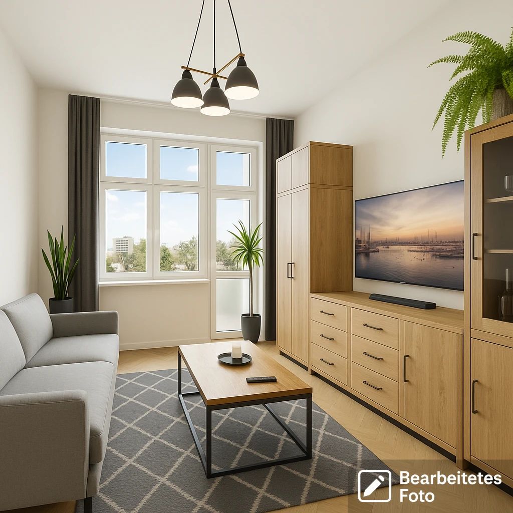 - Das erste Foto in unserer Galerie wurde leicht bearbeitet, um zu veranschaulichen, wie die Wohnung aussehen könnte – beispielsweise durch eine geänderte Wandfarbe. Die nachfolgenden Bilder zeigen den tatsächlichen Zustand der Immobilie.