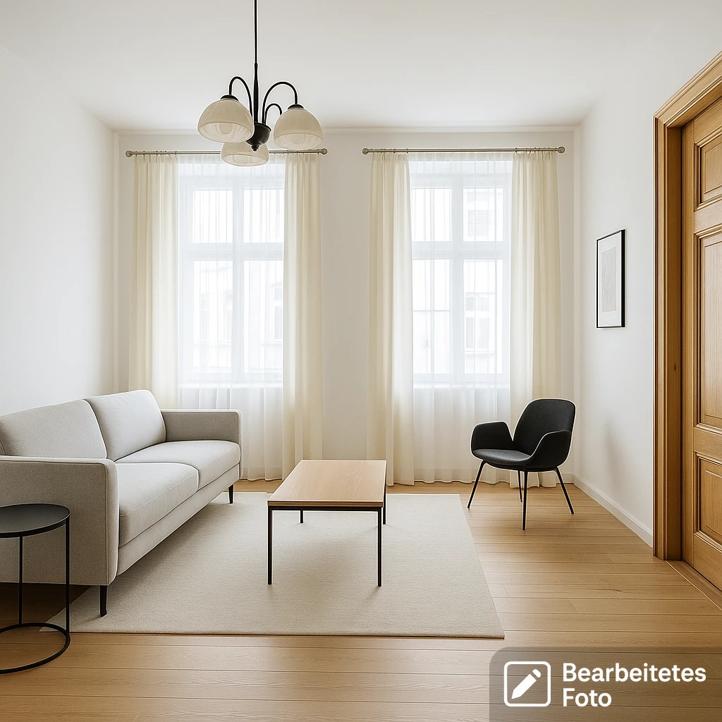 - Das erste Foto in unserer Galerie wurde leicht bearbeitet, um zu veranschaulichen, wie die Wohnung aussehen könnte – beispielsweise durch eine geänderte Wandfarbe. Die nachfolgenden Bilder zeigen den tatsächlichen Zustand der Immobilie.