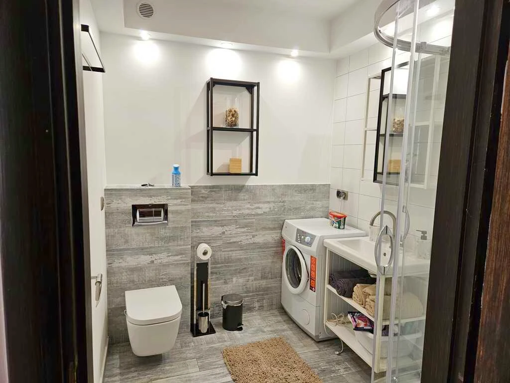 - Badezimmer: Funktionell ausgestattet mit Dusche, WC und Waschmaschine